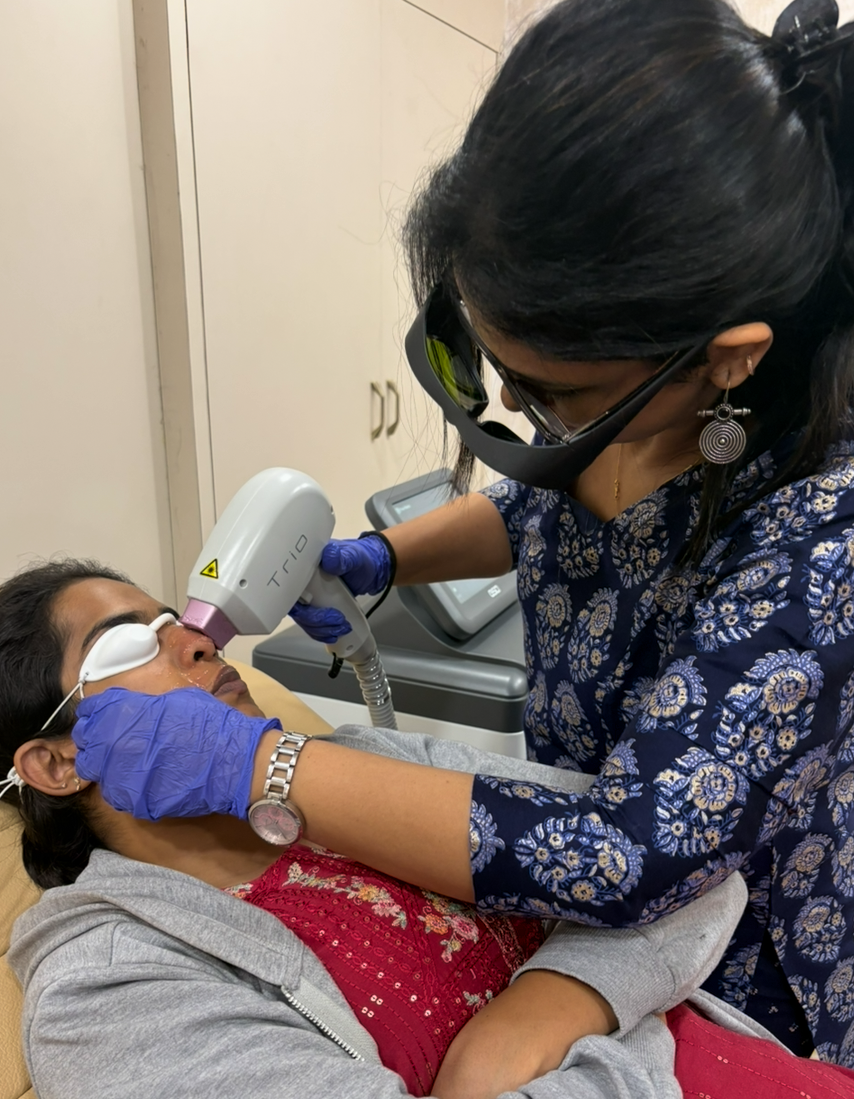 Advanced triple wavelength hair reduction laser to target unwanted body hair cells within dermis safely, effectively and permanently session by session!!